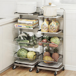Estante ajustable móvil para frutas y verduras, cesta multicapa, carrito de almacenamiento de aperitivos rodante de acero inoxidable, estante para organizar el hogar
