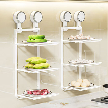 キッチンウォールマウント式ドリルなし準備棚3層吸引皿ラック折りたたみ可能食品整理ホルダーホーム鉄収納棚